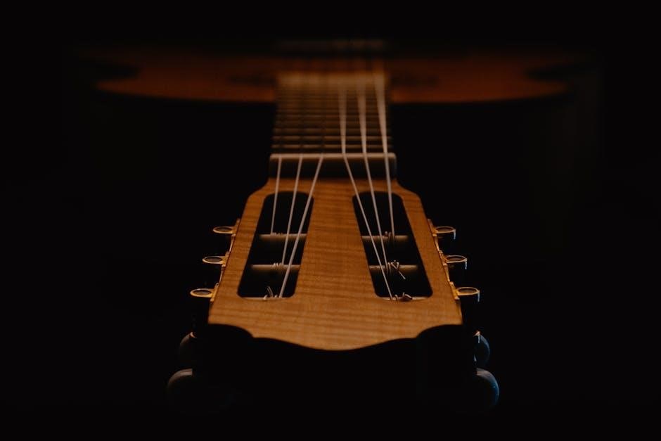 Guitar chord PDFs often include scales and arpeggios to help players enhance their musicality and technique․ Scales provide a framework for understanding the relationship between notes‚ while arpeggios break down chords into melodic sequences․ These tools are essential for improvisation‚ composition‚ and improving finger dexterity․ Many PDFs feature major and minor scales‚ as well as modal scales like Dorian‚ Mixolydian‚ and Aeolian․ Arpeggios are often presented in both open and barre chord forms‚ allowing players to practice chord tones in a melodic context․ By mastering scales and arpeggios‚ guitarists can create more complex and expressive solos․ These resources are particularly valuable for intermediate and advanced players seeking to deepen their understanding of music theory․ Scales and arpeggios are typically accompanied by diagrams and fretboard visuals‚ making them easy to follow and practice․ They are a cornerstone of guitar education and a key feature in comprehensive chord PDFs․