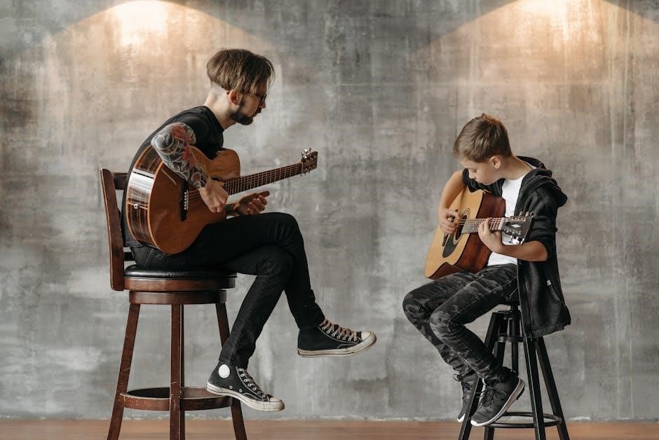 Interactive lessons within guitar chord PDFs offer a dynamic way to learn and practice chords․ These lessons often include video tutorials‚ audio clips‚ and step-by-step guides that demonstrate proper techniques․ Many PDFs feature interactive tabs or links to external resources‚ such as practice exercises or jam tracks‚ to enhance the learning experience․ Some also incorporate quizzes or progress trackers to help users assess their understanding and improvement․ These interactive elements make learning chords more engaging and effective‚ as they allow for real-time practice and feedback․ By combining visual‚ auditory‚ and hands-on learning methods‚ interactive lessons cater to different learning styles‚ making them a valuable resource for guitarists of all levels․ They also provide a structured approach to mastering chords‚ helping players build confidence and skill over time․ This feature is particularly useful for self-taught learners seeking a guided learning path․